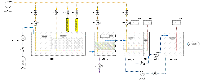 2、设备采用的污水处理工艺为 AO 工艺,工艺流程为:污水→格栅→集水池→污水提升泵→MFB 池→沉淀池→砂滤池→清水池→出水。系统要求具有完备的自动控制系统,可满足连续自动运行的需要;由于现场占地面积限制,只能摆放一套设备,供应商合理安排设备规模要求不得更改主体核心处理工艺。工艺流程图如下表: