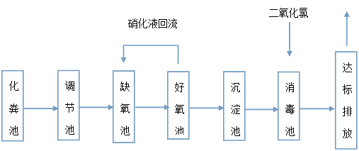 由于排放污水为医院污水,其有机物浓度低,水质指标较稳定,可生化性较好。因此设计采用较成熟的生物膜法污水处理工艺。而针对医院污水特性,设计中充分考虑医院污水中病菌的杀灭,消毒杀菌剂采用杀菌效果极好的二氧化氯。